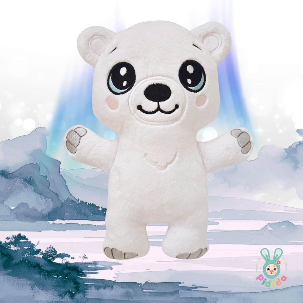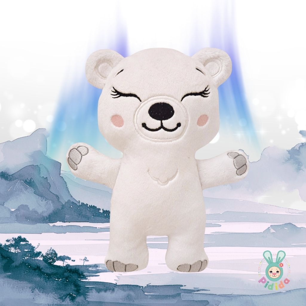 Najchłodniejszy mieszkaniec Arktyki, czyli niedźwiadek polarny. Ten śnieżnobiały przytulas wygląda, jakby właśnie wyszedł z lodowej krainy, ale zamiast groźnego pomruku oferuje uroczy uśmiech. Ma duże, błyszczące oczy, okrągłe uszka i miękkie łapki stworzone do tulenia. W naturze to potężny drapieżnik, tutaj jednak zamienia się w haftowanego strażnika dziecięcych snów. To co, uszyjesz małego polarnego niedźwiadka, a może niedźwiedzicę z długimi rzęskami?